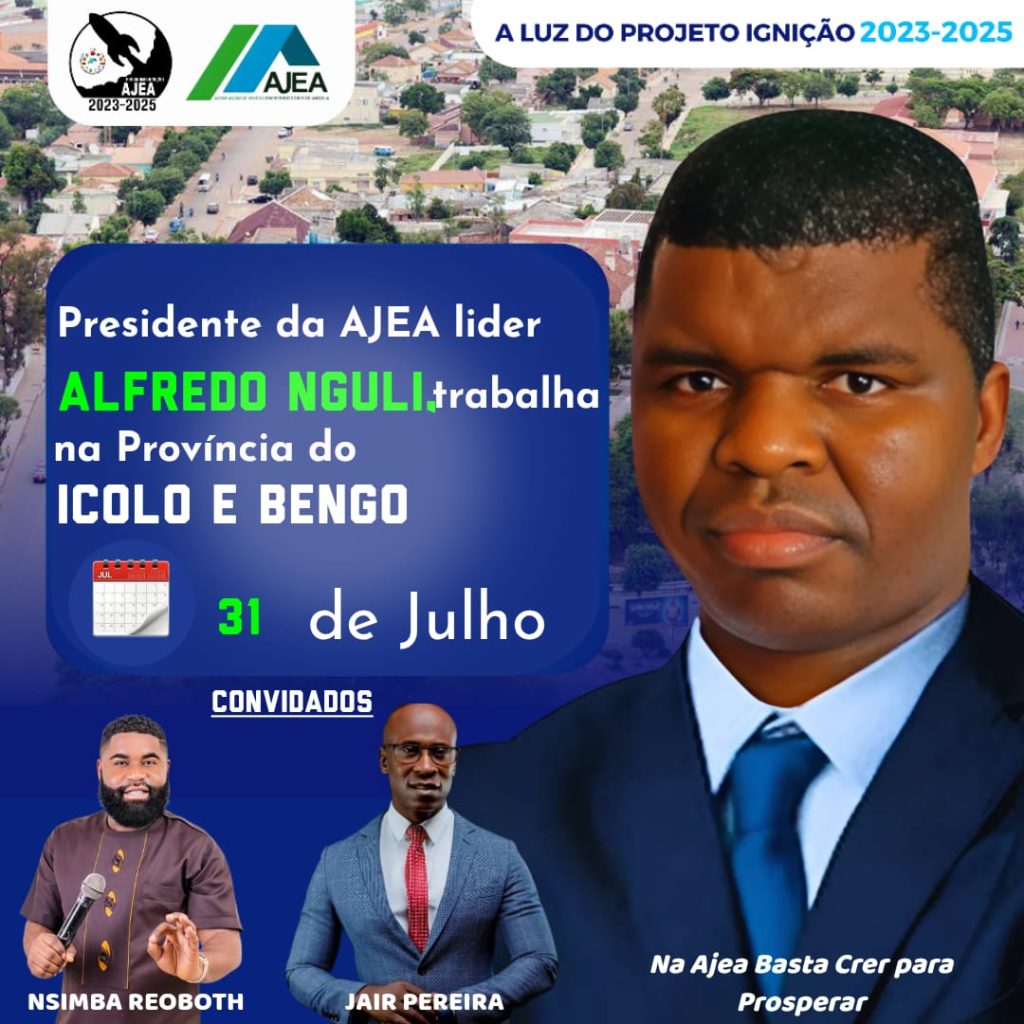 A LUZ DO PROJECTO IGNIÇÃO 2023-2025, AJEA LEVA UMA ACTIVIDADE EM CATETE PROVÍNCIA DO ICOLO E BENGO, AMANHÃ 5@FEIRA DIA 31 DE JULHO, ONDE VAI ORIENTAR NO PERÍODO DA TARDE UMA MEGA PALESTRA DE COMO TRANSFORMAR DIFICULDADE EM OPORTUNIDADE.